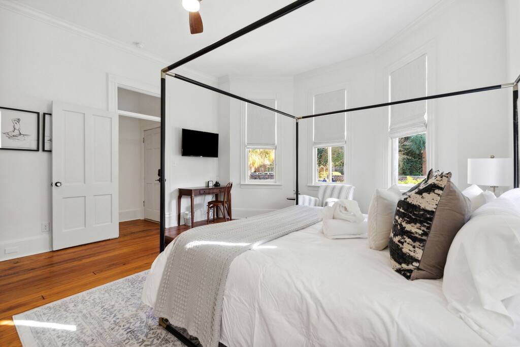 Two parking spots are provided with your reservation. The parking lot is located in the rear of the building and both spots are marked with our apartment number. For any additional cars or visitors, there is ample street parking, especially on weekends and in the evening hours. Guests can self check-in using the smart lock on the front door. The code will be provided 48 hours prior with additional check-in instructions. Centrally located downtown in the Cannonborough neighborhood of the city, guests can walk, bike, Uber or rent a Turo to get anywhere they need on or around the peninsula.
